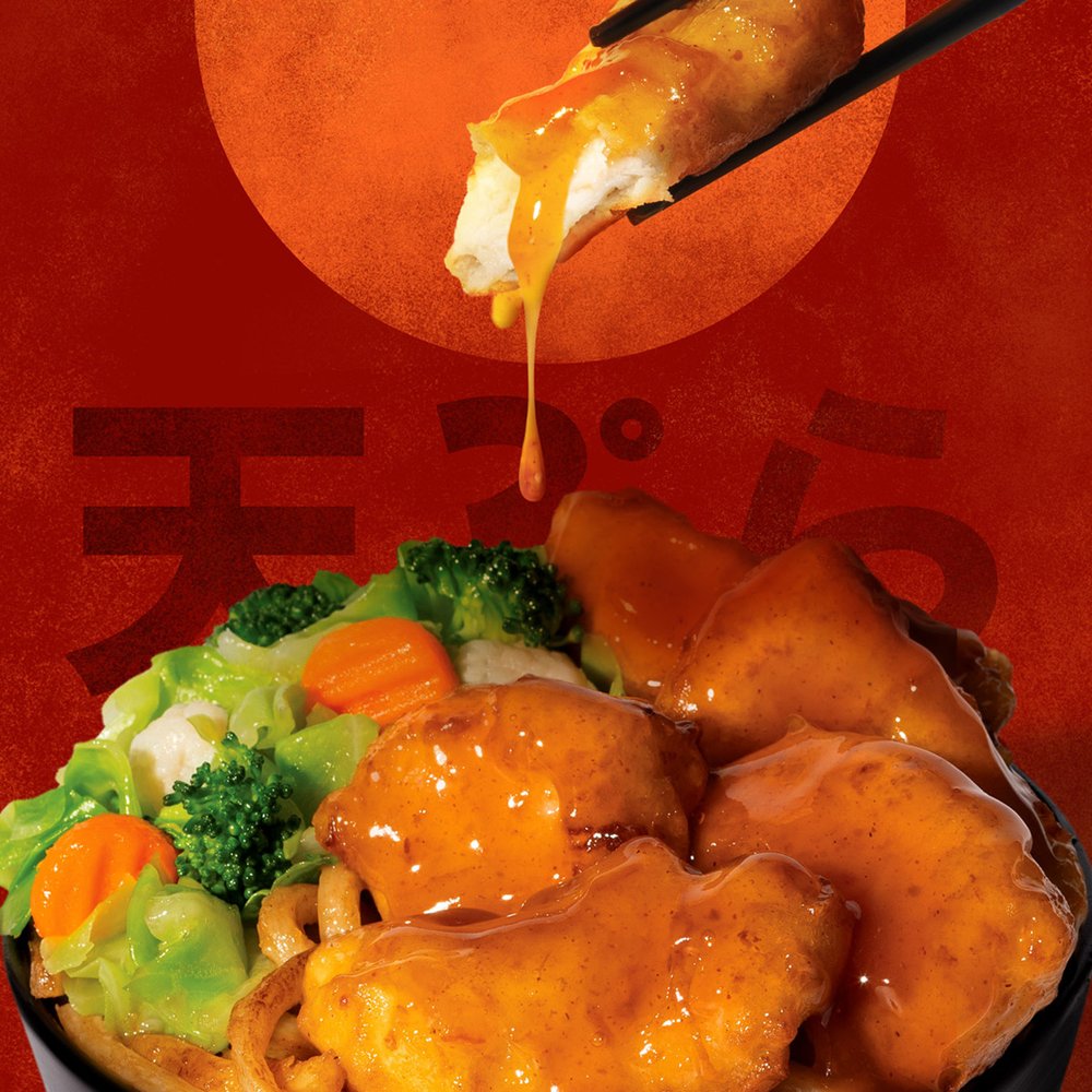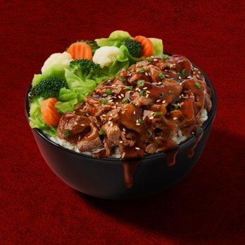 Pick two large proteins with your choice of fluffy rice or udon noodles and mixed veggies.